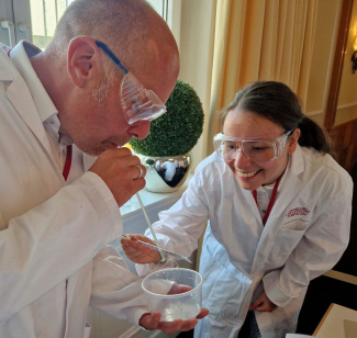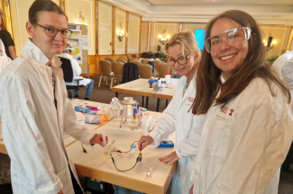 Aber auch die schulische Komponente war abgedeckt. In einem praxisorientierten Workshop durften wir Unterrichtskonzepte und Experimentieraufbauten ausprobieren, zum Beispiel das Bioleaching von Seltenerdmetallen aus Kombucha und die Klimamodellierung mit dem Monash Simple Climate Model. Ein besonderes Highlight war der Einblick in die Nobel Labs 360° per VR-Brille. Dadurch wurde mir verdeutlicht, wie digitale Medien komplexe naturwissenschaftliche Phänomene greifbar machen können.
